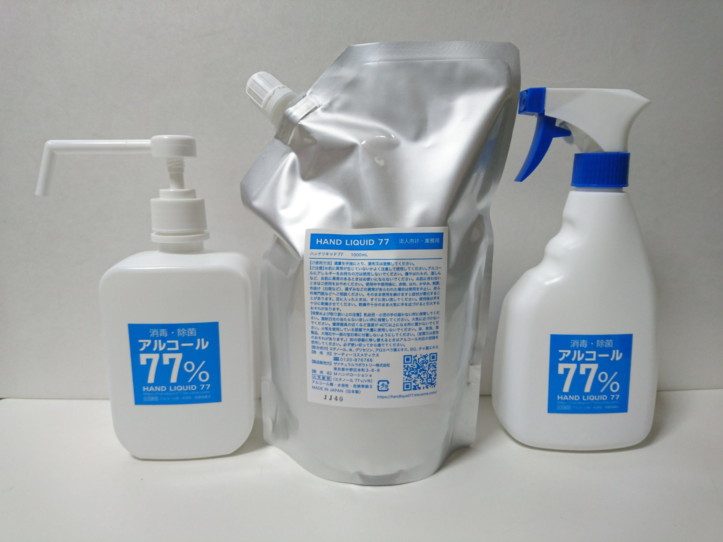 ご来店の際にはこちらのハンドジェル77で消毒して頂いてますので、実際お試し頂けます!!