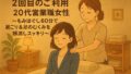 2か月に1度ご来店の千葉市在住のリピーター様。保育士で事務作業や子供の相手、趣味のよさこい練習も重なり疲労がたまっている。