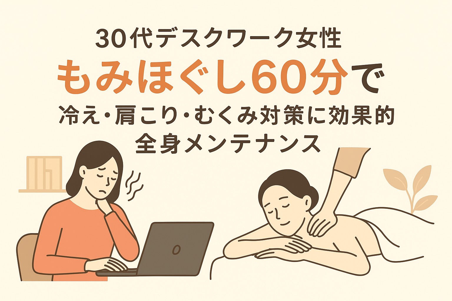 【30代デスクワーク女性】もみほぐし60分で慢性疲労を根本ケア~冬の冷え・肩こり・むくみ改善に効果的な全身メンテナンス~