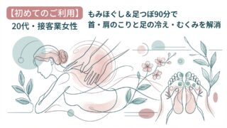 施術実績 【初めてのご利用】20代・接客業女性~もみほぐし&足つぼ90分で首・肩のこりと足の冷え・むくみを解消~