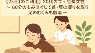 施術実績 【30代デスクワーク女性】もみほぐし60分で慢性疲労を根本ケア~冬の冷え・肩こり・むくみ改善に効果的な全身メンテナンス~
